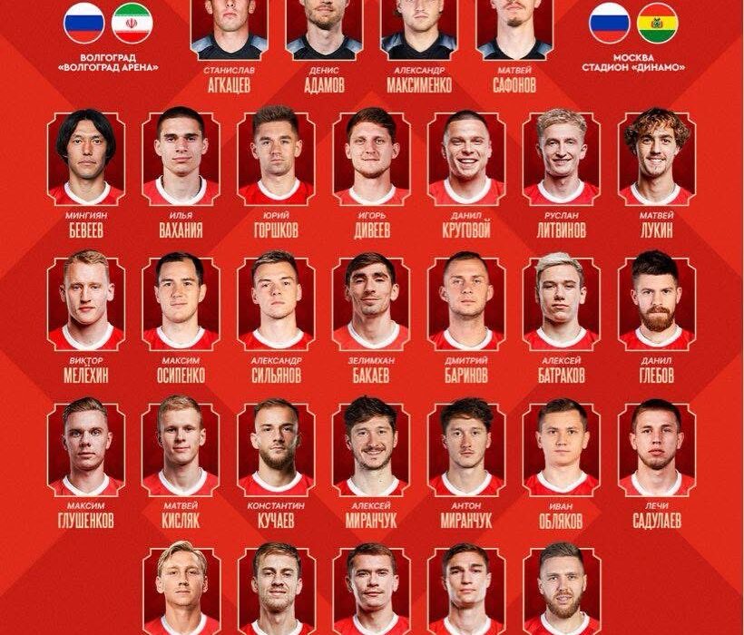 La Selección Rusa dio a conocer la lista de convocados comandada por el DT Valeriy Karpin. La Selección boliviana se medirá ante su similar el próximo martes 14 de octubre.