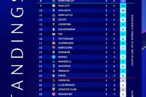 TABLA DE POSICIONES DE LA CHAMPIONS