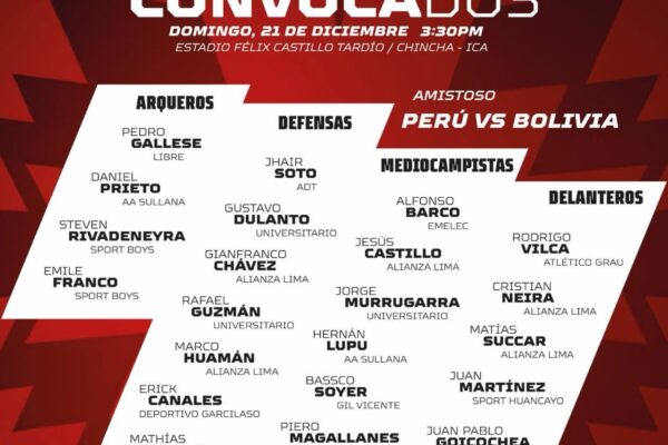 Los elegidos. La Agremiación de Futbolistas Profesionales del Perú (Safap) dio a conocer la lista de convocados peruanos para el duelo amistoso que disputará ante la Selección de Bolivia el próximo domingo 21 de diciembre. El cuadro que comandará Gerardo Ameli cuenta con jugadores, en su mayoría, de la Liga1. Las grandes sorpresas del llamado…