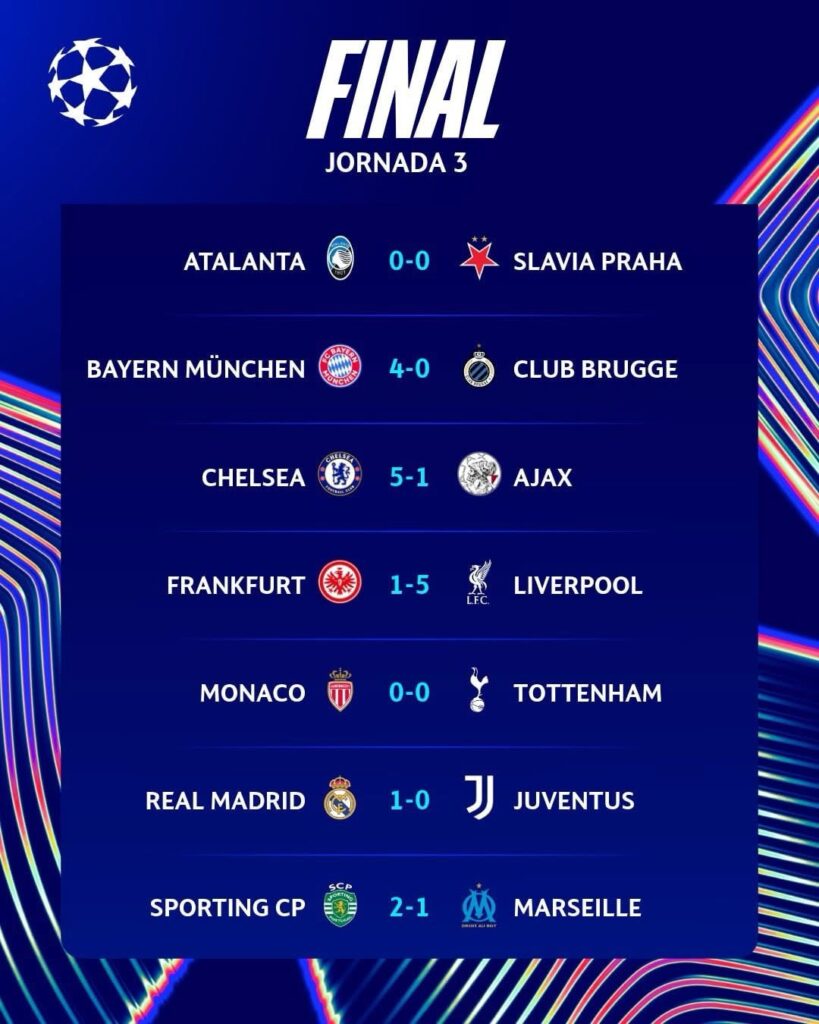 3 goleadas marcaron el final de la jornada 3 de la fase de Liga de la Champions, dejando como líderes con puntaje ideal al PSG, Bayern, Inter, Arsenal y Real Madrid.