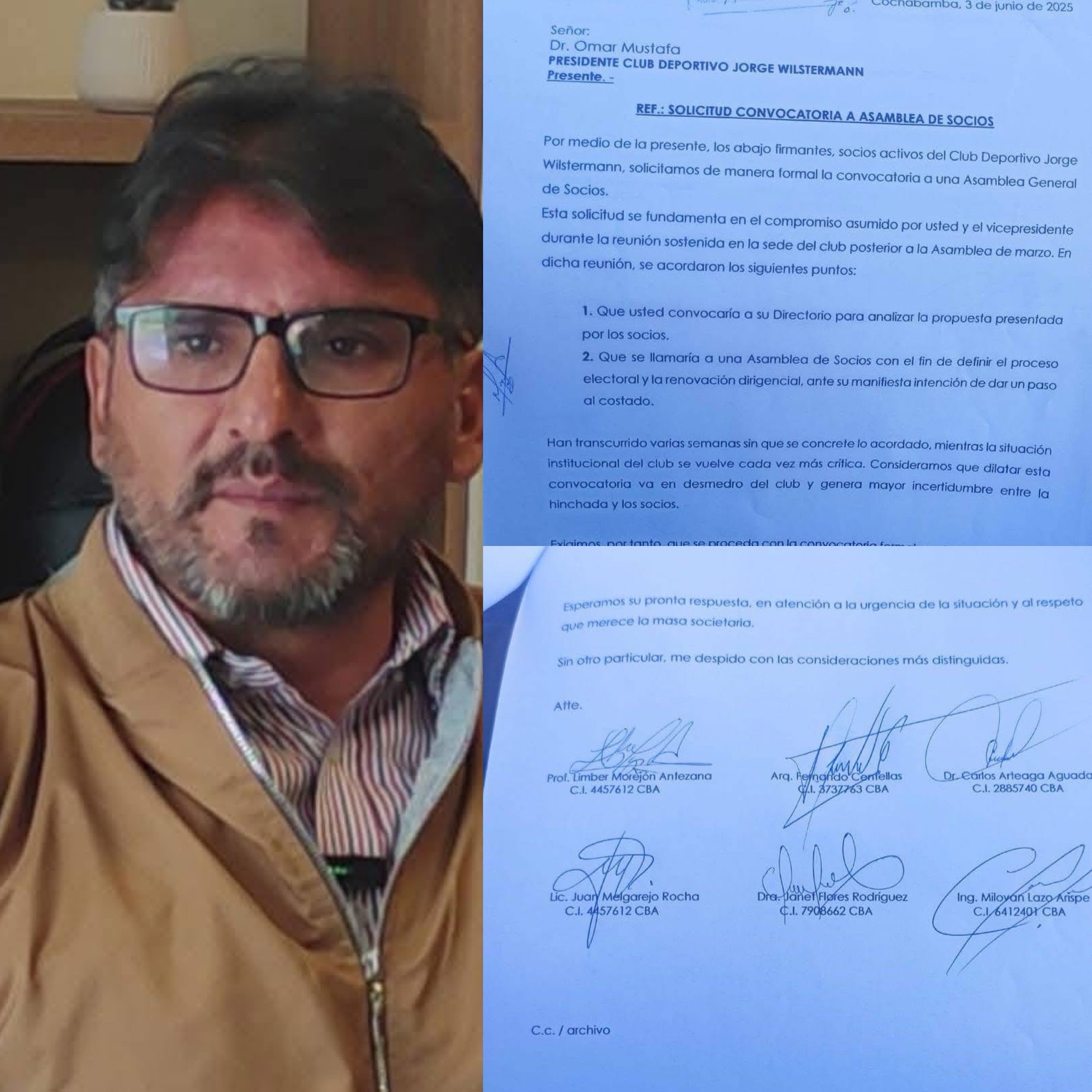 Mediante una carta dirigida a la dirigencia de Wilstermann, el ex jugador Limber Morejón, pide que se llame a una asamblea de socios, para que se analice su propuesta.