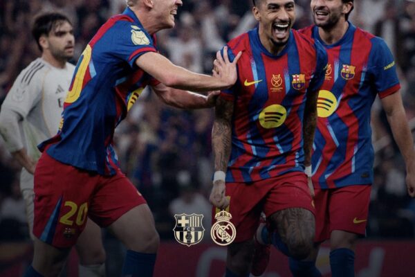 El Barcelona se proclamó campeón de la Supercopa de España tras vencer al Real Madrid por 3-2 en un partido vibrante disputado en Yedá, Arabia Saudita.La final fue un espectáculo de goles, intensidad y emoción, con un desenlace marcado por la brillante actuación de Raphinha, autor de dos goles que inclinaron la balanza a favor…